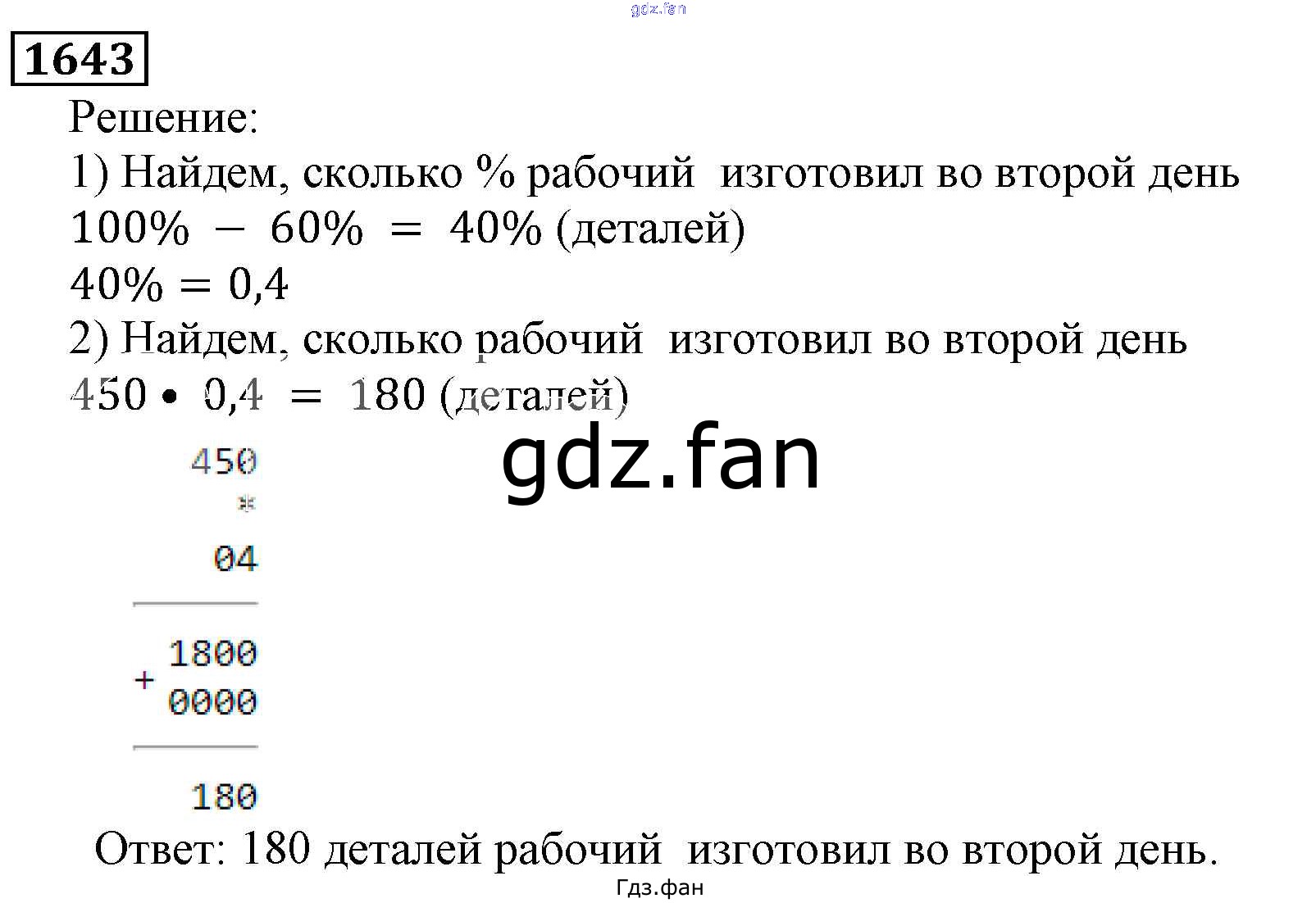 Проверка домашнего задания всегда занимает большое количество времени. На помощь приходит ГДЗ фан по Математике пятого класса. Здесь собраны популярные ответы на 1643 (стр. 249) Математика 5 класс Виленкин Н.Я.