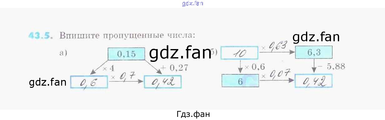 Проверка домашнего задания всегда занимает большое количество времени. На помощь приходит ГДЗ фан по Математике пятого класса. Здесь собраны популярные ответы на 43.5 (стр. 42) Математика 5 класс рабочая тетрадь Зубарева И.И.