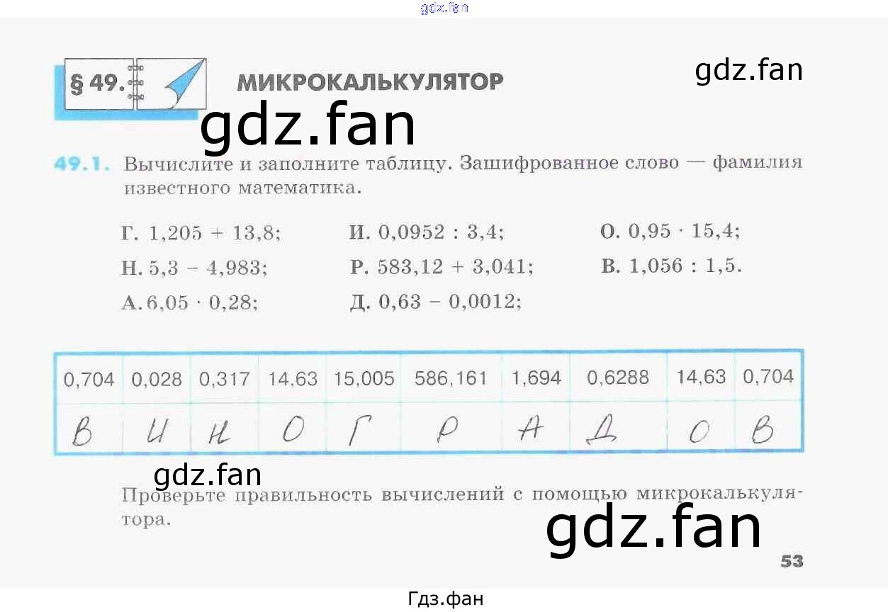 Проверка домашнего задания всегда занимает большое количество времени. На помощь приходит ГДЗ фан по Математике пятого класса. Здесь собраны популярные ответы на 49.1 (стр. 53) Математика 5 класс рабочая тетрадь Зубарева И.И.