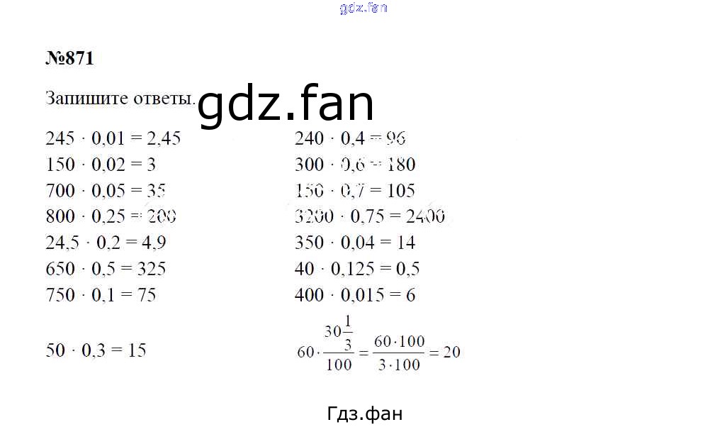 Проверка домашнего задания всегда занимает большое количество времени. На помощь приходит ГДЗ фан по Математике пятого класса. Здесь собраны популярные ответы на 871 (стр. 224) Математика 5 класс Зубарева И.И.