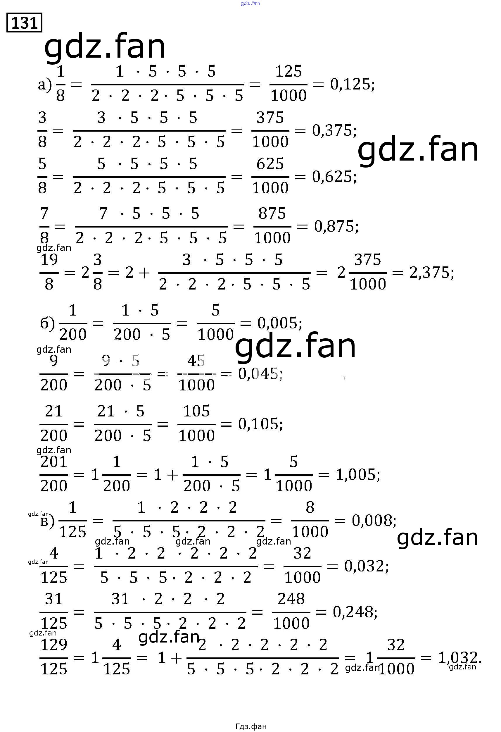Проверка домашнего задания всегда занимает большое количество времени. На помощь приходит ГДЗ фан по Математике шестого класса. Здесь собраны популярные ответы на 131 (стр. 52) Математика 6 класс Бунимович Кузнецова