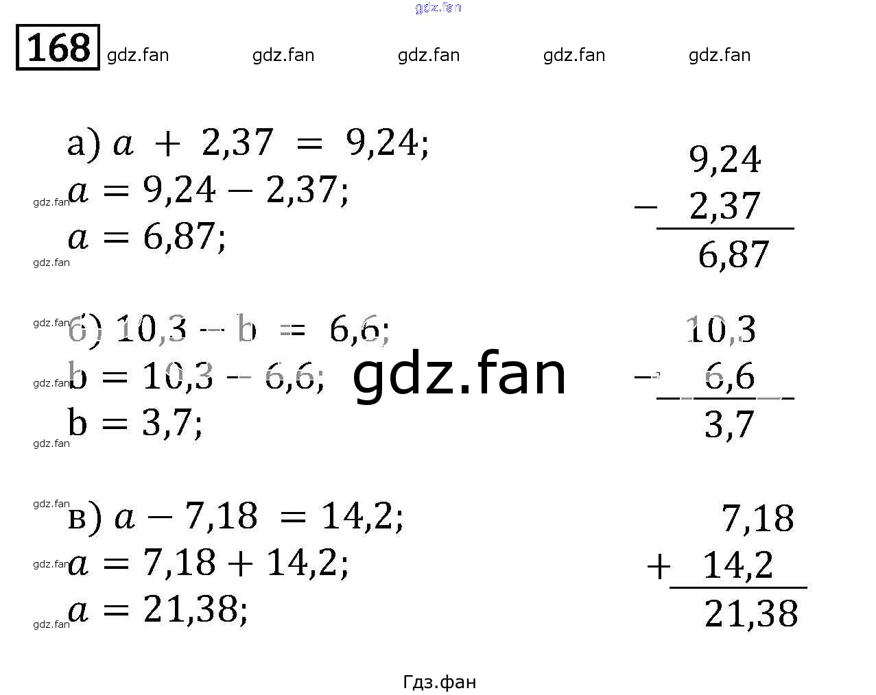 Проверка домашнего задания всегда занимает большое количество времени. На помощь приходит ГДЗ фан по Математике шестого класса. Здесь собраны популярные ответы на 168 (стр. 62) Математика 6 класс Бунимович Кузнецова