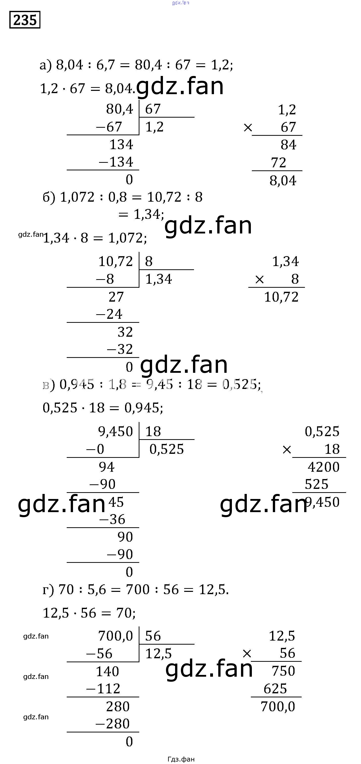 Проверка домашнего задания всегда занимает большое количество времени. На помощь приходит ГДЗ фан по Математике шестого класса. Здесь собраны популярные ответы на 235 (стр. 77) Математика 6 класс Бунимович Кузнецова