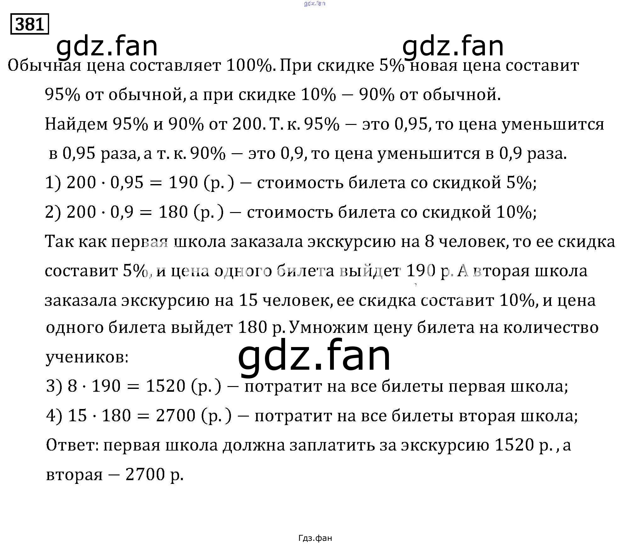 Проверка домашнего задания всегда занимает большое количество времени. На помощь приходит ГДЗ фан по Математике шестого класса. Здесь собраны популярные ответы на 381 (стр. 120) Математика 6 класс Бунимович Кузнецова