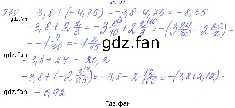 Проверка домашнего задания всегда занимает большое количество времени. На помощь приходит ГДЗ фан по Математике шестого класса. Здесь собраны популярные ответы на 230 (стр. 20) Математика 6 класс дидактические материалы Чесноков А.С.