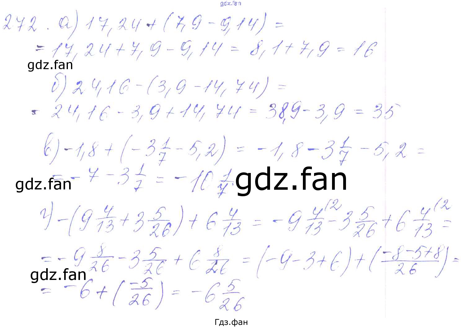 Проверка домашнего задания всегда занимает большое количество времени. На помощь приходит ГДЗ фан по Математике шестого класса. Здесь собраны популярные ответы на 272 (стр. 107) Математика 6 класс дидактические материалы Чесноков А.С.
