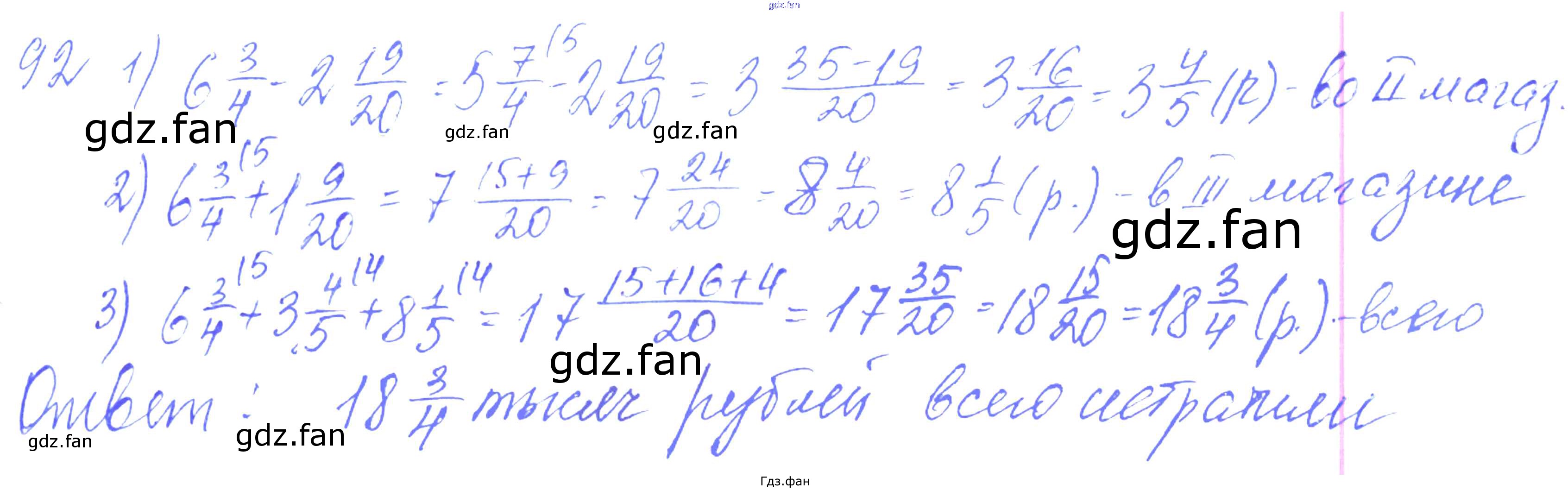 Проверка домашнего задания всегда занимает большое количество времени. На помощь приходит ГДЗ фан по Математике шестого класса. Здесь собраны популярные ответы на 92 (стр. 92) Математика 6 класс дидактические материалы Чесноков А.С.