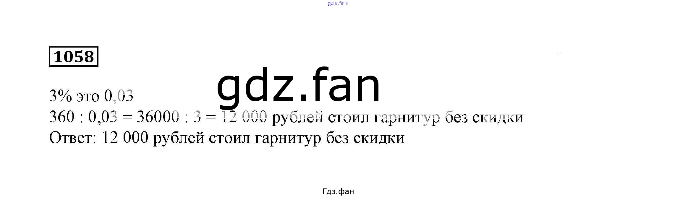 Проверка домашнего задания всегда занимает большое количество времени. На помощь приходит ГДЗ фан по Математике шестого класса. Здесь собраны популярные ответы на 1058 (стр. 274) Математика 6 класс Дорофеев Г.В.