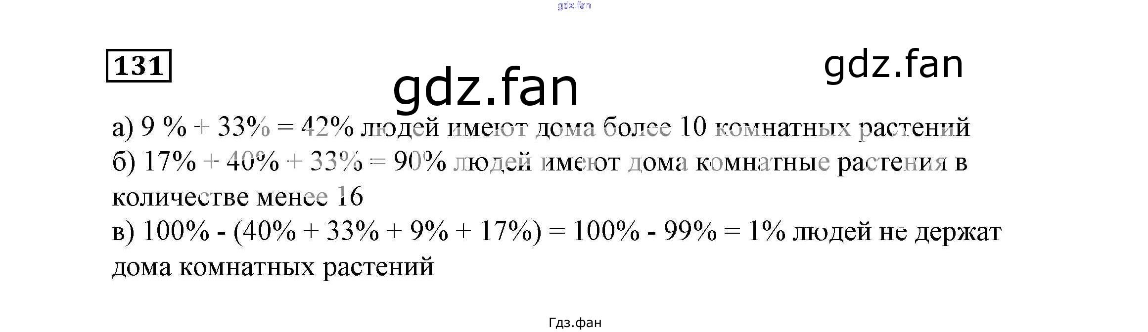 Проверка домашнего задания всегда занимает большое количество времени. На помощь приходит ГДЗ фан по Математике шестого класса. Здесь собраны популярные ответы на 131 (стр. 35) Математика 6 класс Дорофеев Г.В.