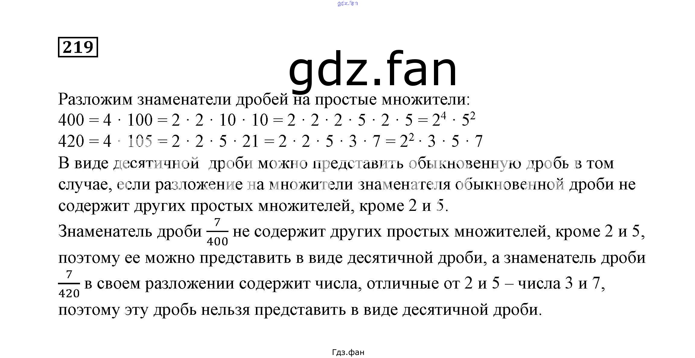 Проверка домашнего задания всегда занимает большое количество времени. На помощь приходит ГДЗ фан по Математике шестого класса. Здесь собраны популярные ответы на 219 (стр. 65) Математика 6 класс Дорофеев Г.В.