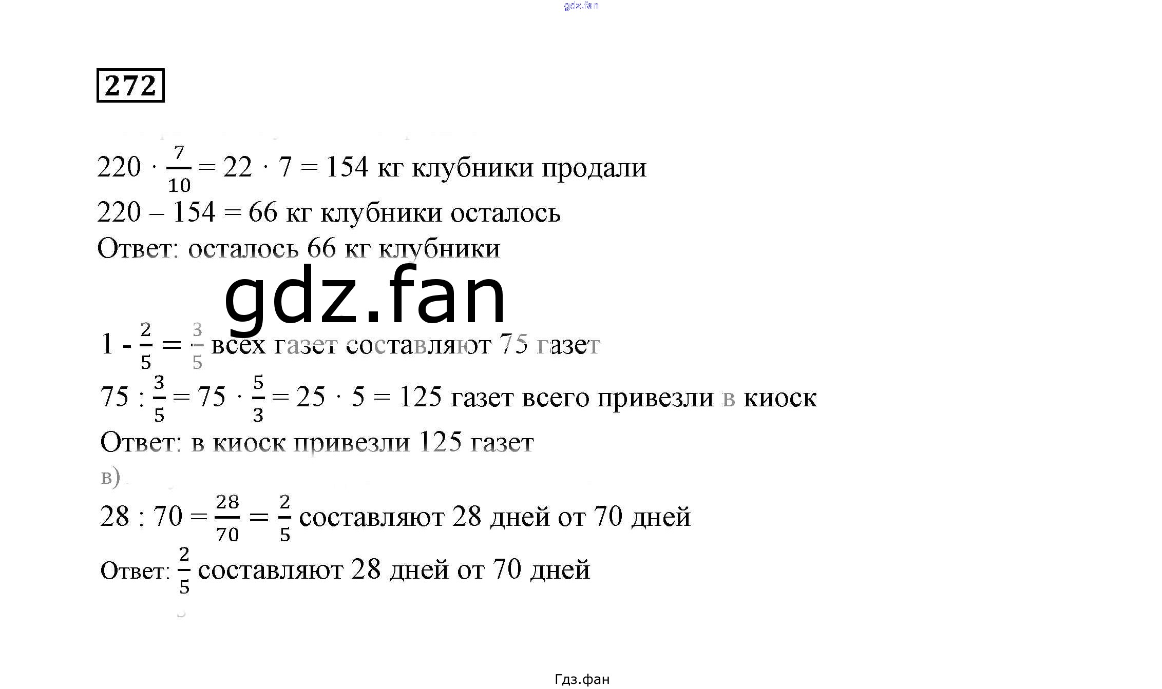 Проверка домашнего задания всегда занимает большое количество времени. На помощь приходит ГДЗ фан по Математике шестого класса. Здесь собраны популярные ответы на 272 (стр. 76) Математика 6 класс Дорофеев Г.В.