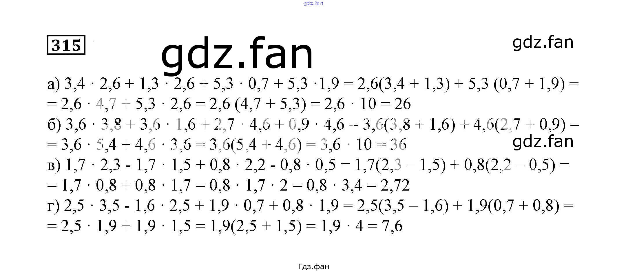Проверка домашнего задания всегда занимает большое количество времени. На помощь приходит ГДЗ фан по Математике шестого класса. Здесь собраны популярные ответы на 315 (стр. 85) Математика 6 класс Дорофеев Г.В.