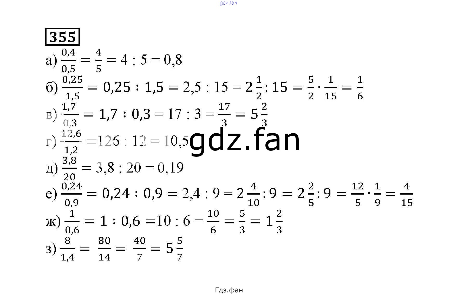 Проверка домашнего задания всегда занимает большое количество времени. На помощь приходит ГДЗ фан по Математике шестого класса. Здесь собраны популярные ответы на 355 (стр. 92) Математика 6 класс Дорофеев Г.В.
