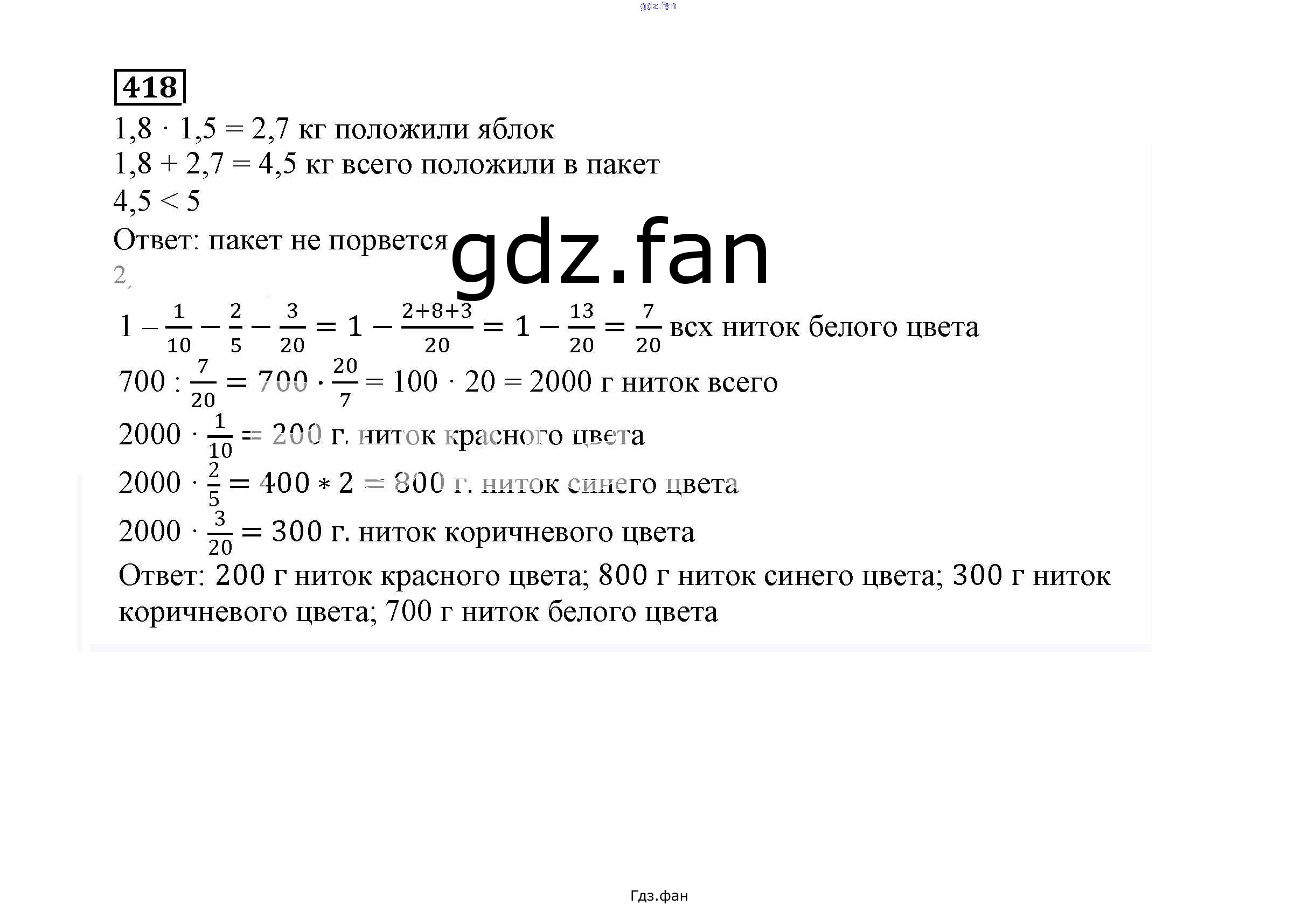 Проверка домашнего задания всегда занимает большое количество времени. На помощь приходит ГДЗ фан по Математике шестого класса. Здесь собраны популярные ответы на 418 (стр. 107) Математика 6 класс Дорофеев Г.В.
