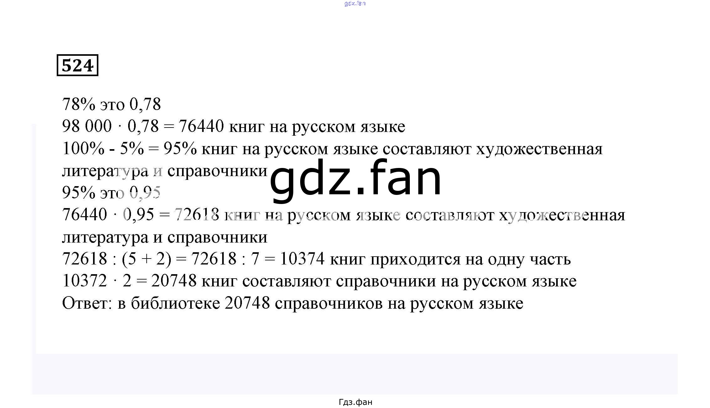Проверка домашнего задания всегда занимает большое количество времени. На помощь приходит ГДЗ фан по Математике шестого класса. Здесь собраны популярные ответы на 524 (стр. 134) Математика 6 класс Дорофеев Г.В.