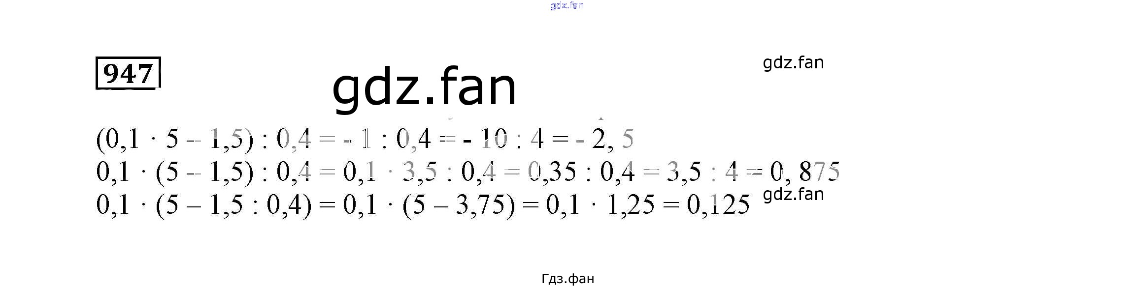 Проверка домашнего задания всегда занимает большое количество времени. На помощь приходит ГДЗ фан по Математике шестого класса. Здесь собраны популярные ответы на 947 (стр. 246) Математика 6 класс Дорофеев Г.В.
