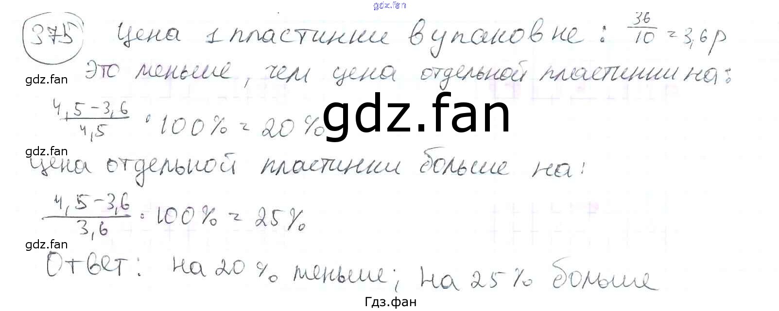 Проверка домашнего задания всегда занимает большое количество времени. На помощь приходит ГДЗ фан по Математике шестого класса. Здесь собраны популярные ответы на 375 (стр. 88) Математика 6 класс Петерсон Л.Г.