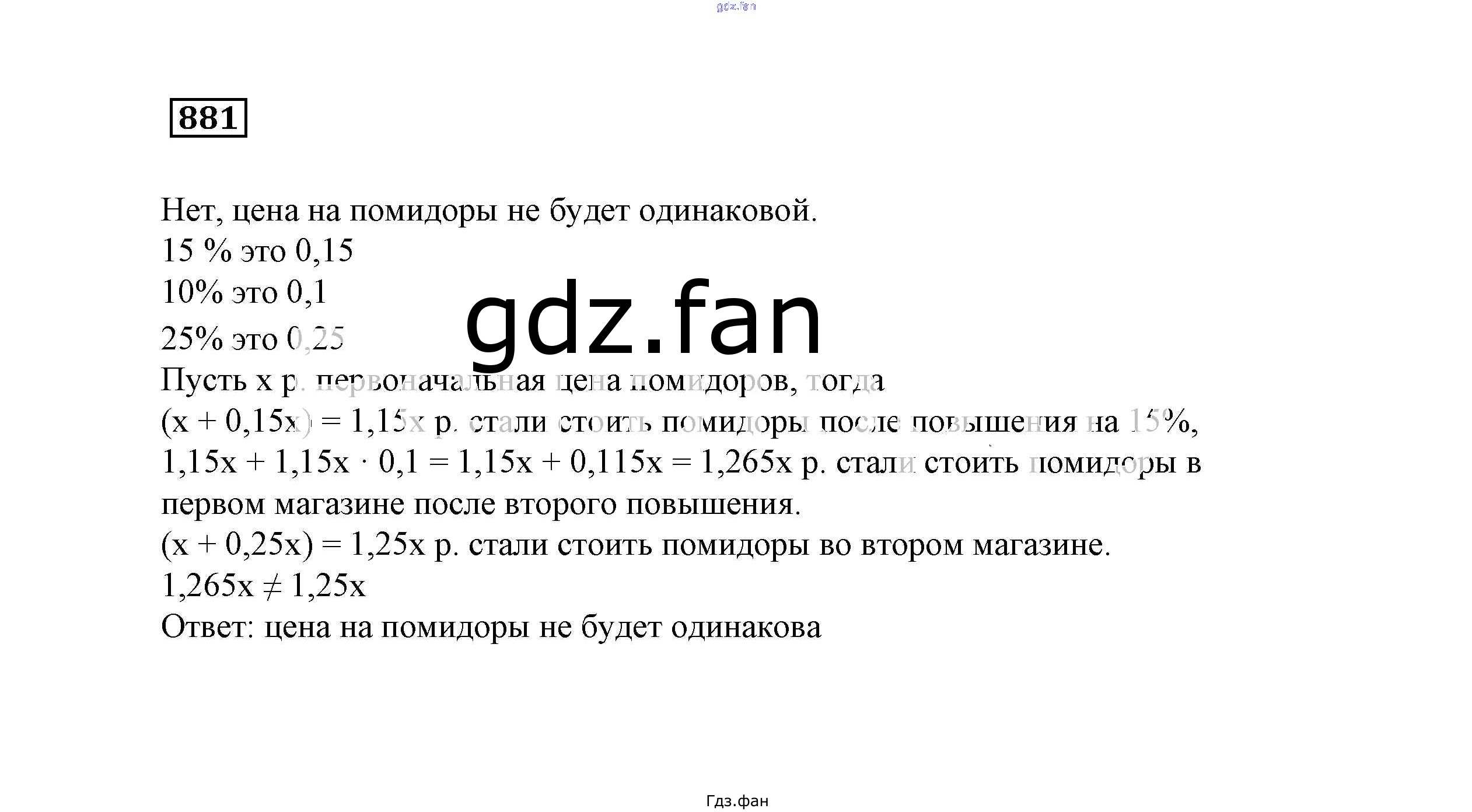 Проверка домашнего задания всегда занимает большое количество времени. На помощь приходит ГДЗ фан по Математике шестого класса. Здесь собраны популярные ответы на 881 (стр. 198) Математика 6 класс Истомина Н.Б.