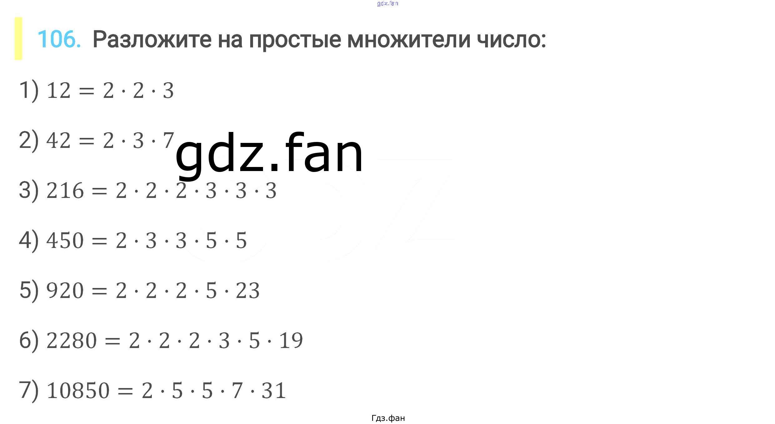 Проверка домашнего задания всегда занимает большое количество времени. На помощь приходит ГДЗ фан по Математике шестого класса. Здесь собраны популярные ответы на 106 (стр. 23) Математика 6 класс Мерзляк А.Г.