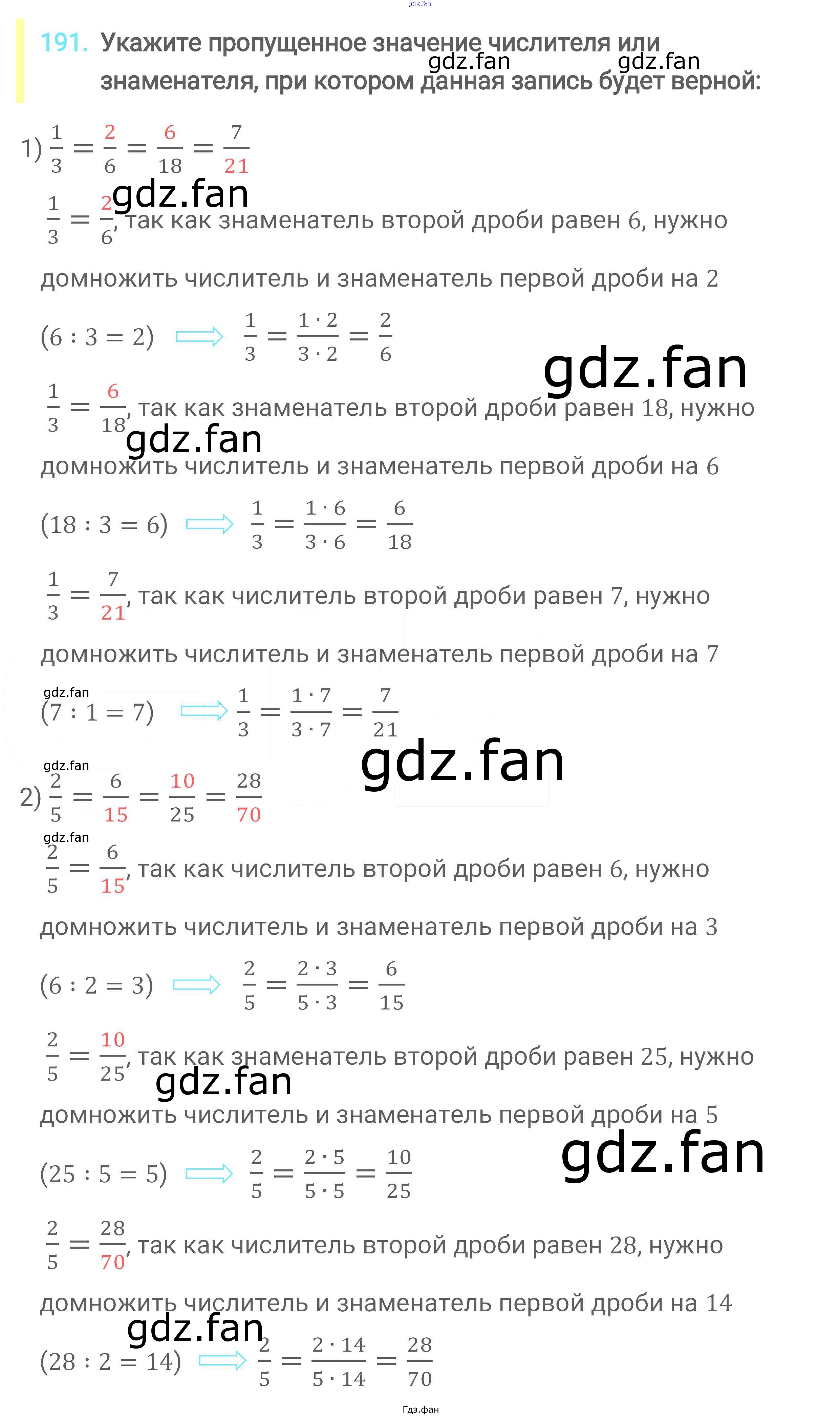 Проверка домашнего задания всегда занимает большое количество времени. На помощь приходит ГДЗ фан по Математике шестого класса. Здесь собраны популярные ответы на 191 (стр. 43) Математика 6 класс Мерзляк А.Г.