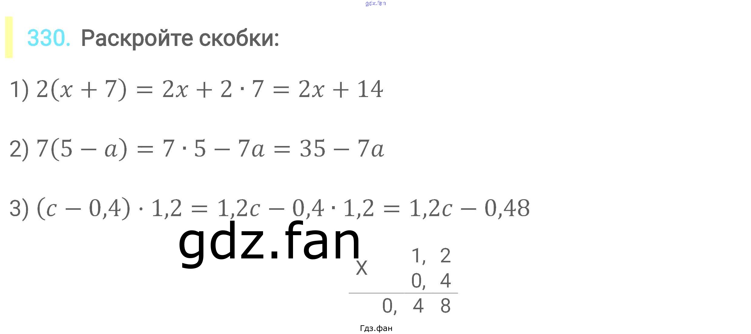 Проверка домашнего задания всегда занимает большое количество времени. На помощь приходит ГДЗ фан по Математике шестого класса. Здесь собраны популярные ответы на 330 (стр. 64) Математика 6 класс Мерзляк А.Г.