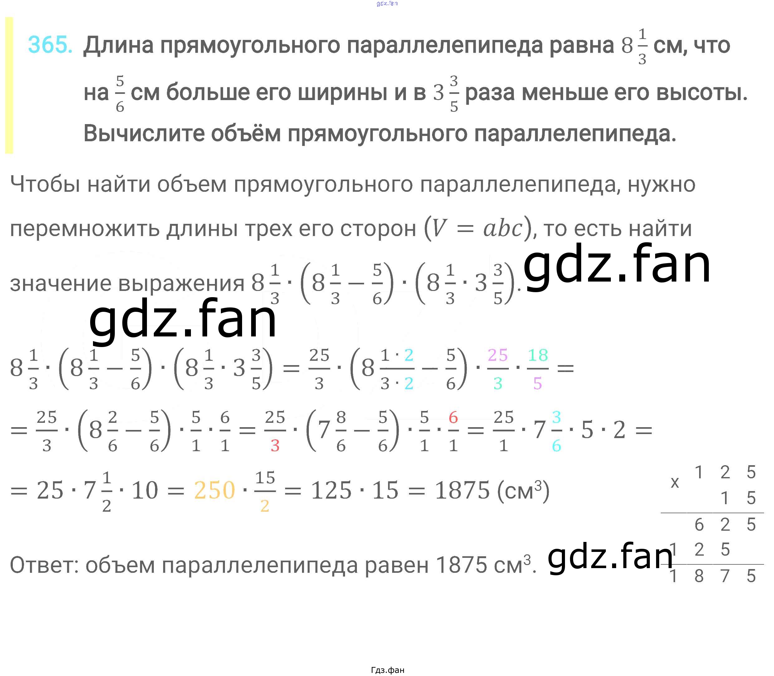 Проверка домашнего задания всегда занимает большое количество времени. На помощь приходит ГДЗ фан по Математике шестого класса. Здесь собраны популярные ответы на 365 (стр. 71) Математика 6 класс Мерзляк А.Г.