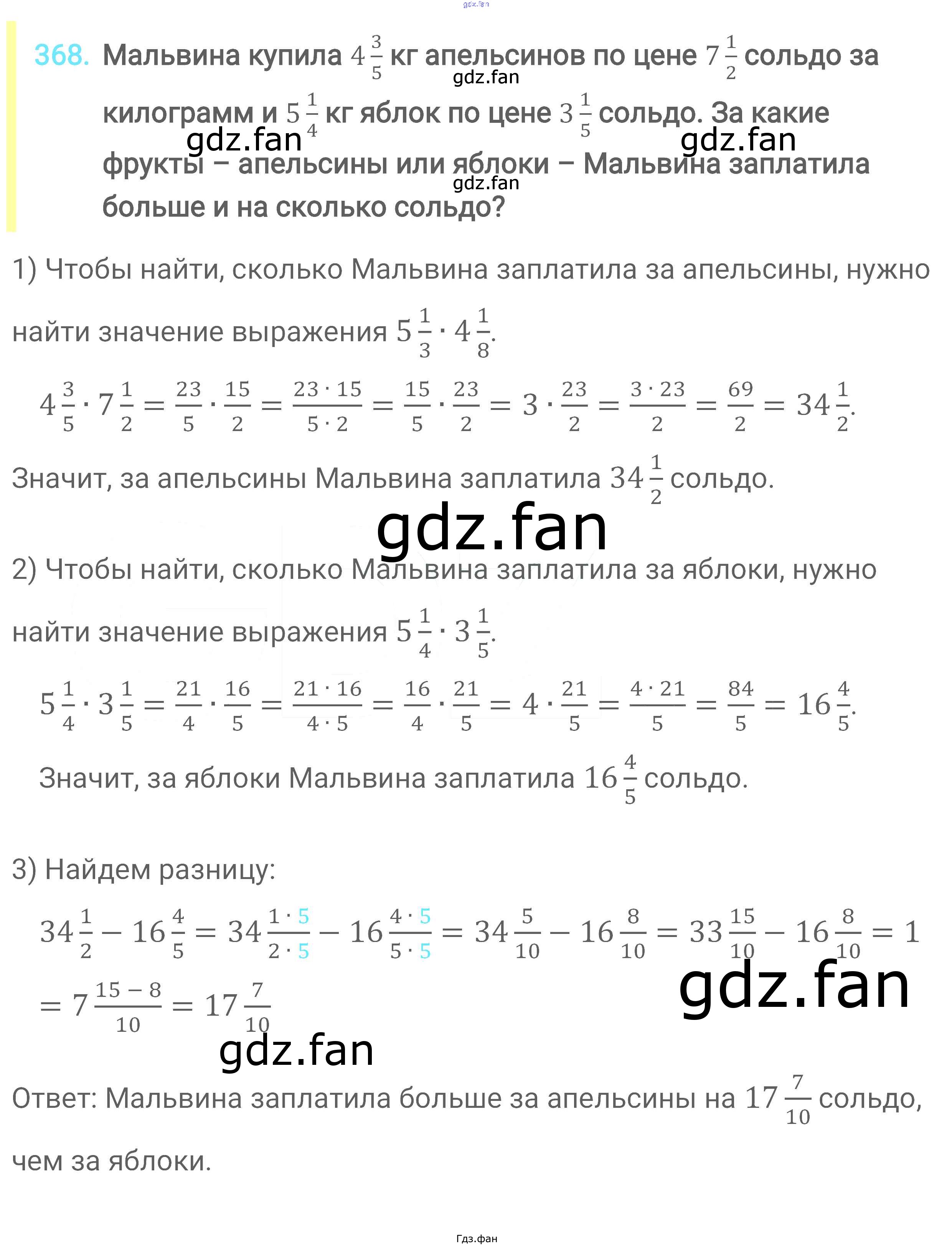 Проверка домашнего задания всегда занимает большое количество времени. На помощь приходит ГДЗ фан по Математике шестого класса. Здесь собраны популярные ответы на 368 (стр. 71) Математика 6 класс Мерзляк А.Г.