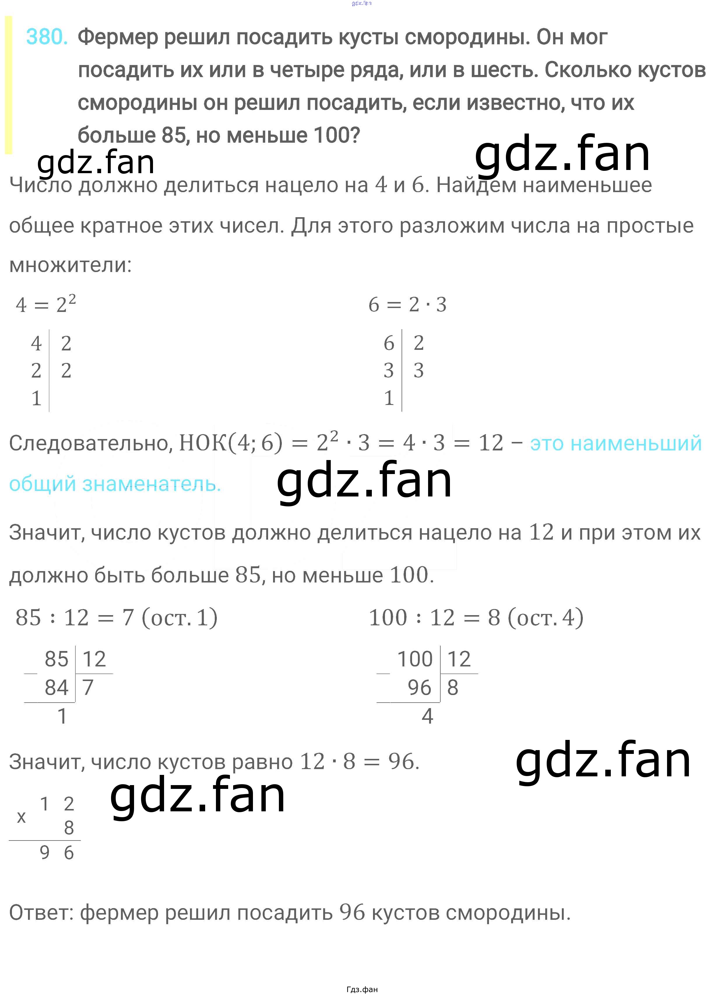 Проверка домашнего задания всегда занимает большое количество времени. На помощь приходит ГДЗ фан по Математике шестого класса. Здесь собраны популярные ответы на 380 (стр. 72) Математика 6 класс Мерзляк А.Г.