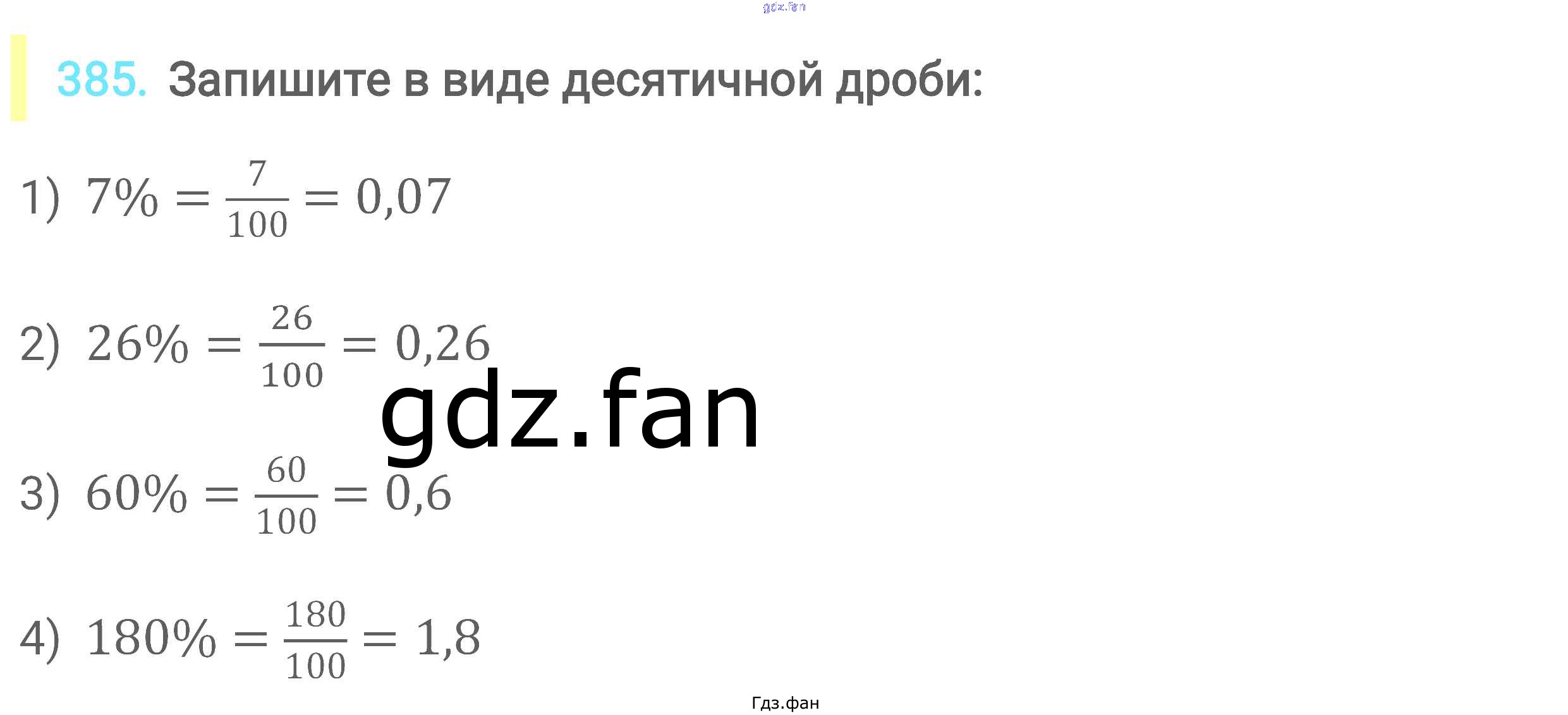 Проверка домашнего задания всегда занимает большое количество времени. На помощь приходит ГДЗ фан по Математике шестого класса. Здесь собраны популярные ответы на 385 (стр. 73) Математика 6 класс Мерзляк А.Г.