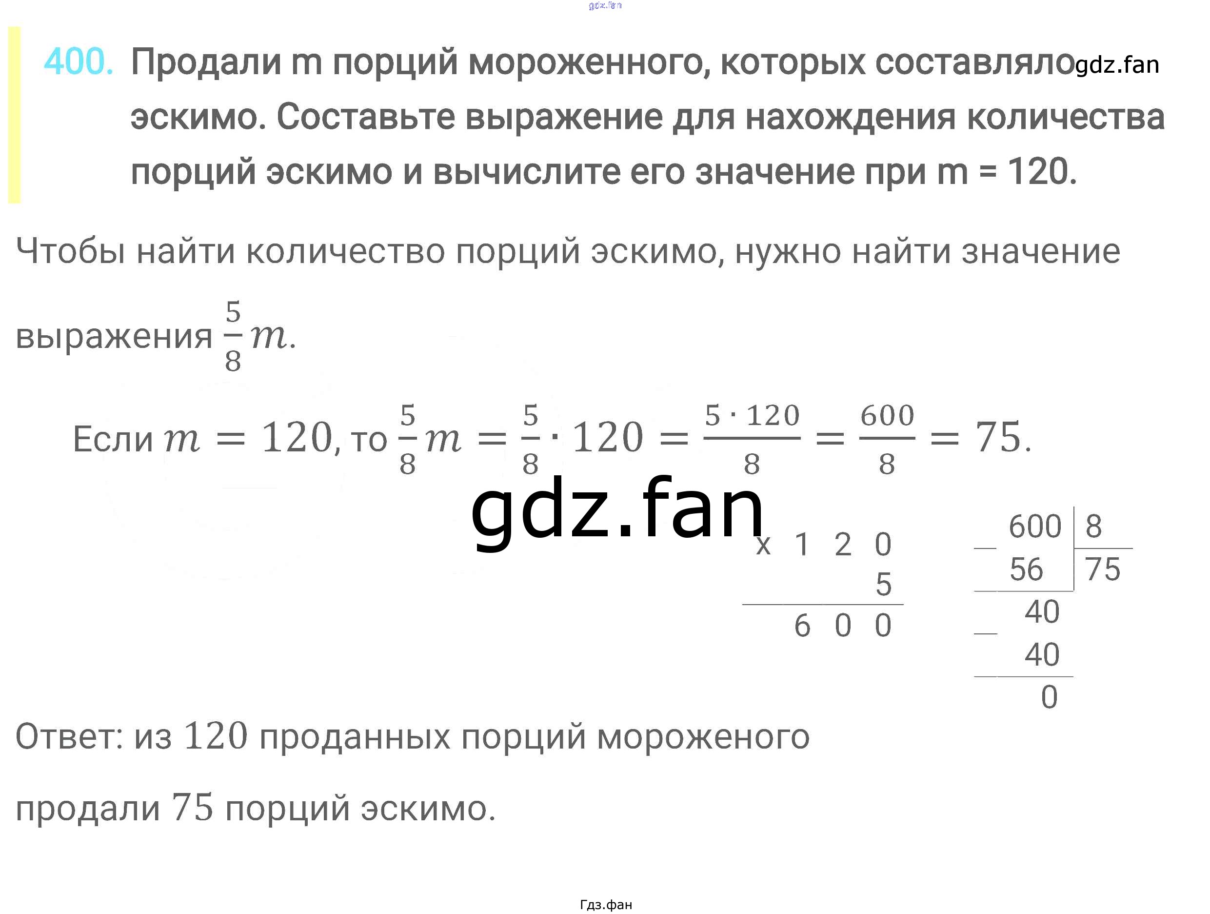 Проверка домашнего задания всегда занимает большое количество времени. На помощь приходит ГДЗ фан по Математике шестого класса. Здесь собраны популярные ответы на 400 (стр. 76) Математика 6 класс Мерзляк А.Г.