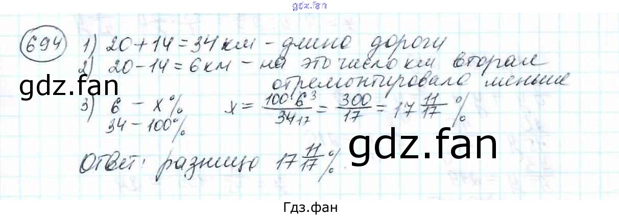 Проверка домашнего задания всегда занимает большое количество времени. На помощь приходит ГДЗ фан по Математике шестого класса. Здесь собраны популярные ответы на 694 (стр. 139) Математика 6 класс Мерзляк А.Г.