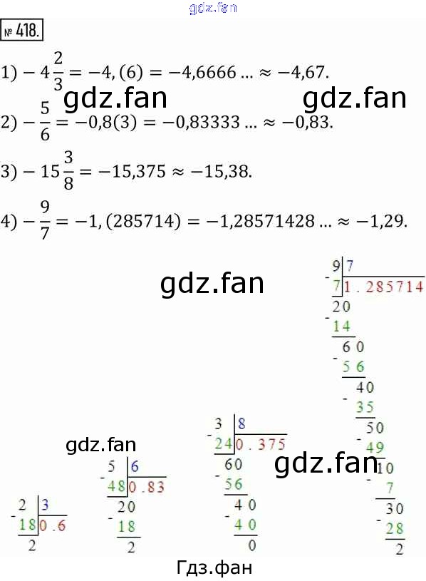 Проверка домашнего задания всегда занимает большое количество времени. На помощь приходит ГДЗ фан по Математике шестого класса. Здесь собраны популярные ответы на 418 (стр. 124) Математика 6 класс Муравин Г.К.