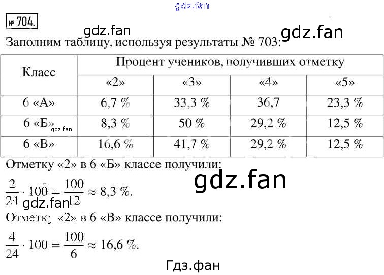 Проверка домашнего задания всегда занимает большое количество времени. На помощь приходит ГДЗ фан по Математике шестого класса. Здесь собраны популярные ответы на 704 (стр. 220) Математика 6 класс Муравин Г.К.