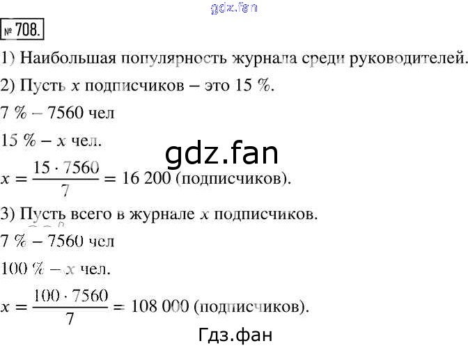 Проверка домашнего задания всегда занимает большое количество времени. На помощь приходит ГДЗ фан по Математике шестого класса. Здесь собраны популярные ответы на 708 (стр. 222) Математика 6 класс Муравин Г.К.