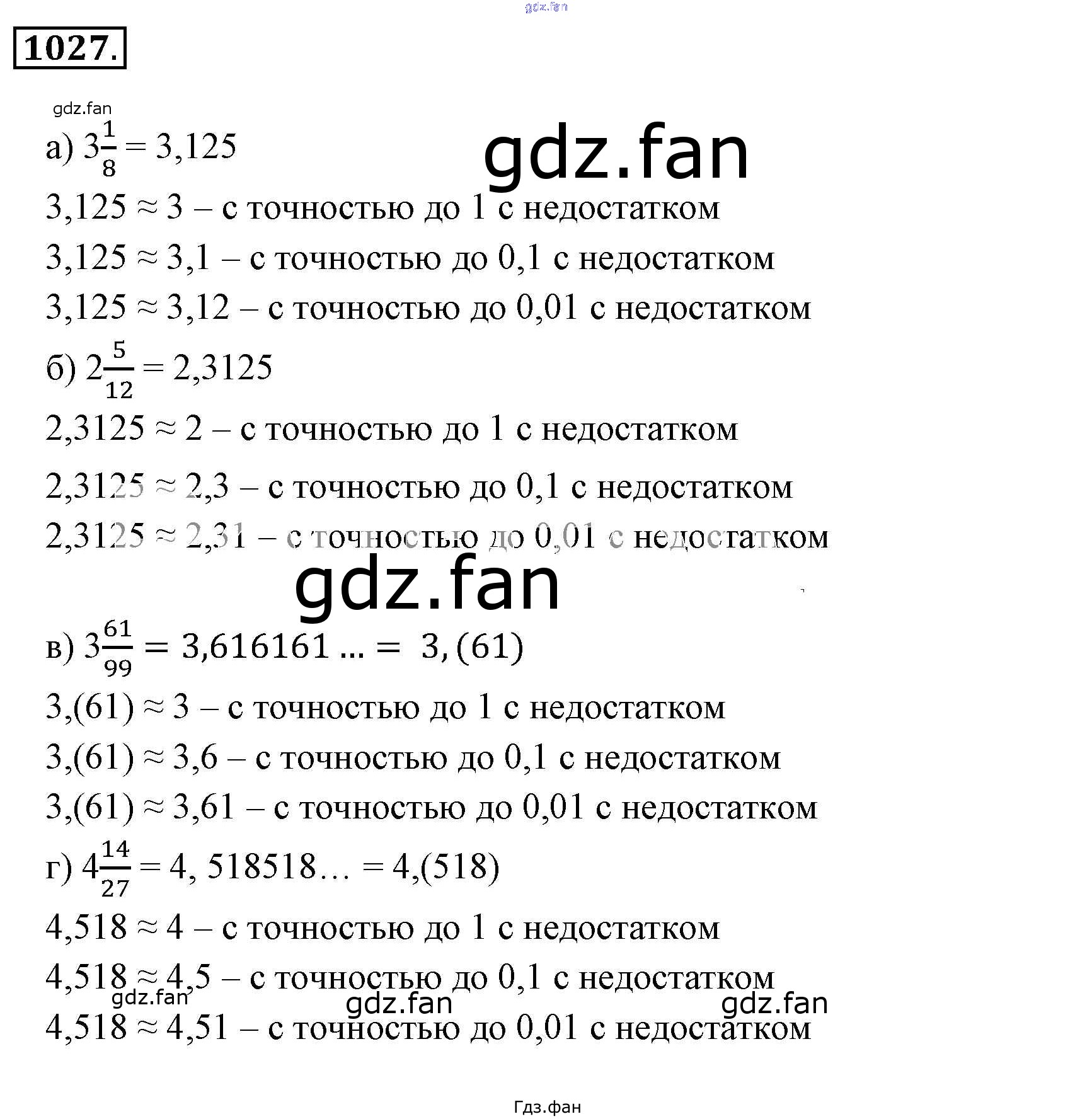 Проверка домашнего задания всегда занимает большое количество времени. На помощь приходит ГДЗ фан по Математике шестого класса. Здесь собраны популярные ответы на 1027 (стр. 207) Математика 6 класс Никольский С.М.