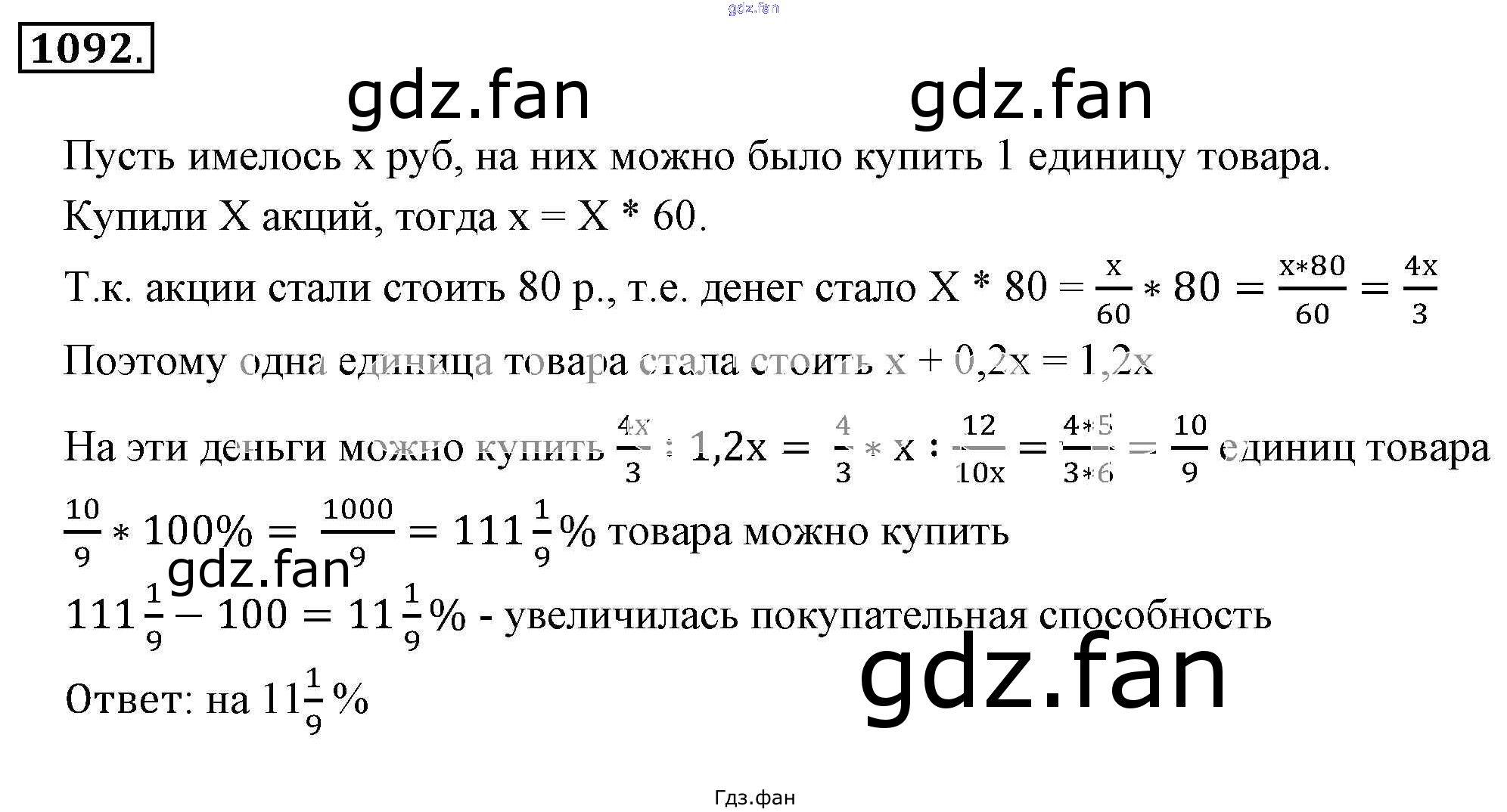 Проверка домашнего задания всегда занимает большое количество времени. На помощь приходит ГДЗ фан по Математике шестого класса. Здесь собраны популярные ответы на 1092 (стр. 228) Математика 6 класс Никольский С.М.
