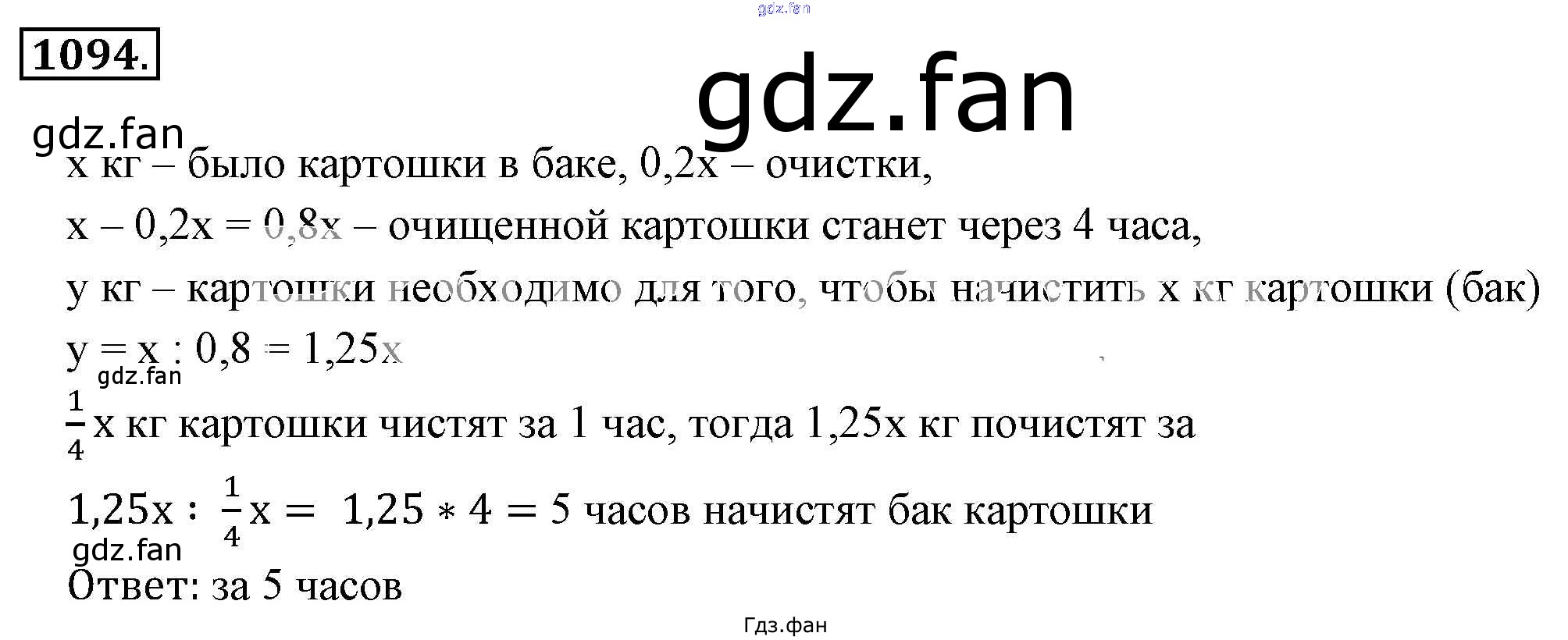 Проверка домашнего задания всегда занимает большое количество времени. На помощь приходит ГДЗ фан по Математике шестого класса. Здесь собраны популярные ответы на 1094 (стр. 228) Математика 6 класс Никольский С.М.