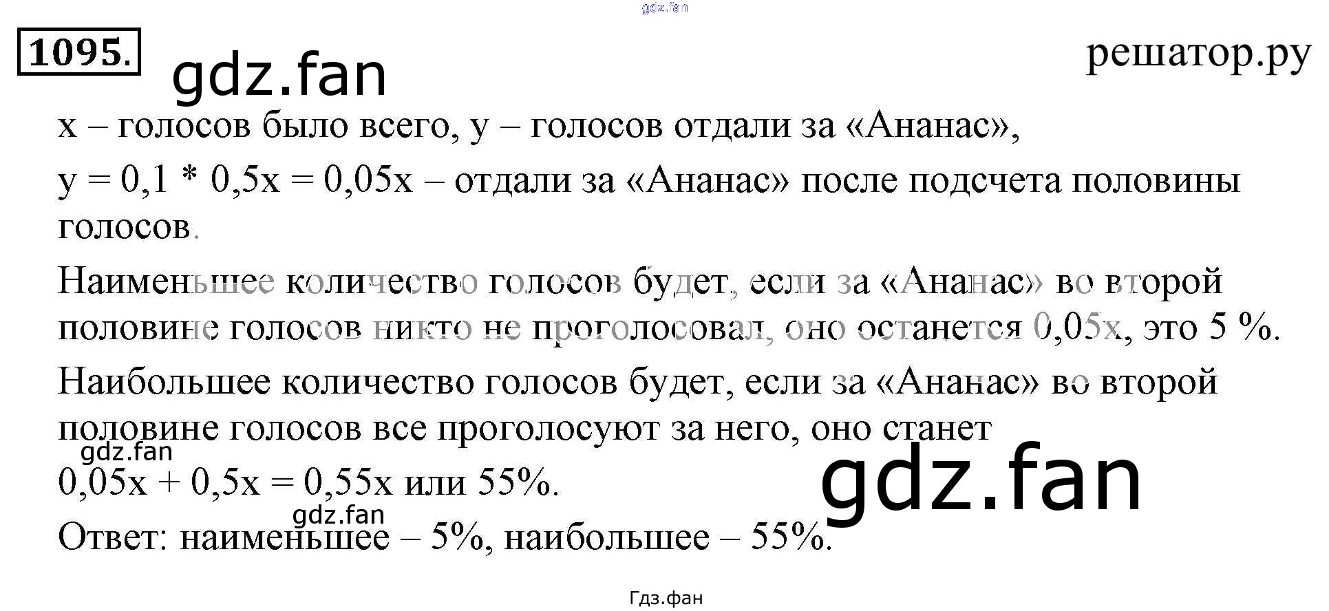 Проверка домашнего задания всегда занимает большое количество времени. На помощь приходит ГДЗ фан по Математике шестого класса. Здесь собраны популярные ответы на 1095 (стр. 228) Математика 6 класс Никольский С.М.