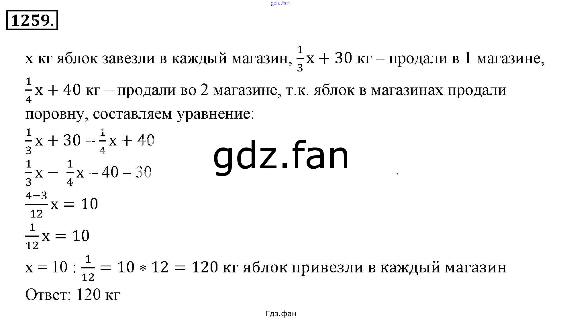 Проверка домашнего задания всегда занимает большое количество времени. На помощь приходит ГДЗ фан по Математике шестого класса. Здесь собраны популярные ответы на 1259 (стр. 246) Математика 6 класс Никольский С.М.