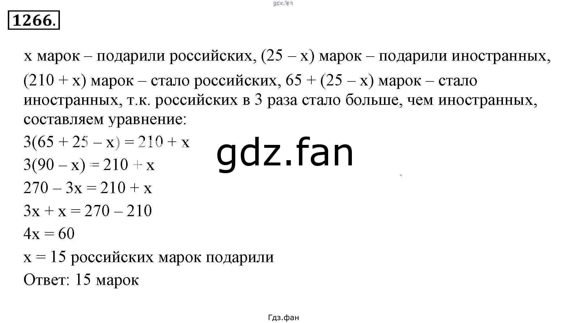 Проверка домашнего задания всегда занимает большое количество времени. На помощь приходит ГДЗ фан по Математике шестого класса. Здесь собраны популярные ответы на 1266 (стр. 247) Математика 6 класс Никольский С.М.