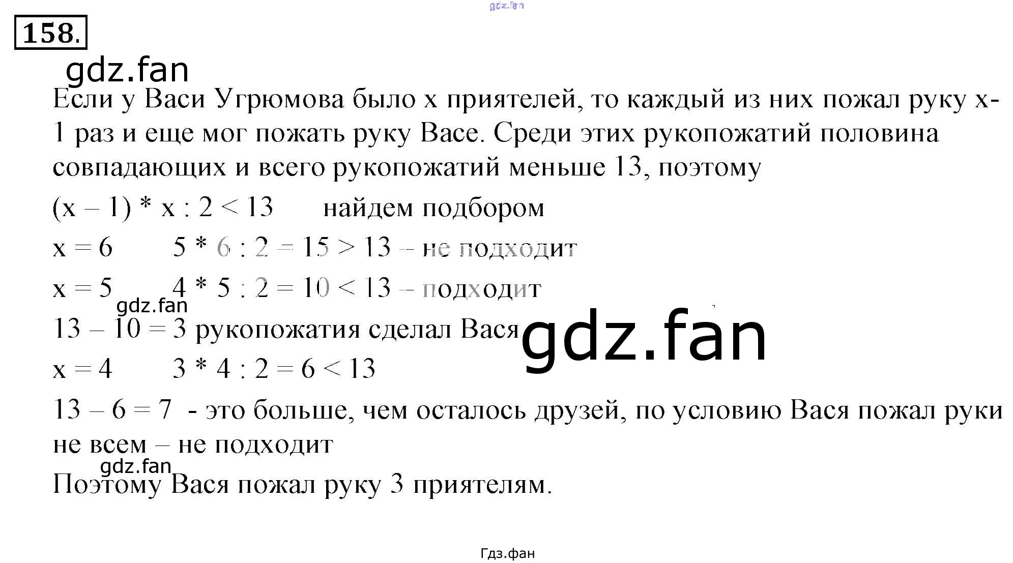 Проверка домашнего задания всегда занимает большое количество времени. На помощь приходит ГДЗ фан по Математике шестого класса. Здесь собраны популярные ответы на 158 (стр. 36) Математика 6 класс Никольский С.М.
