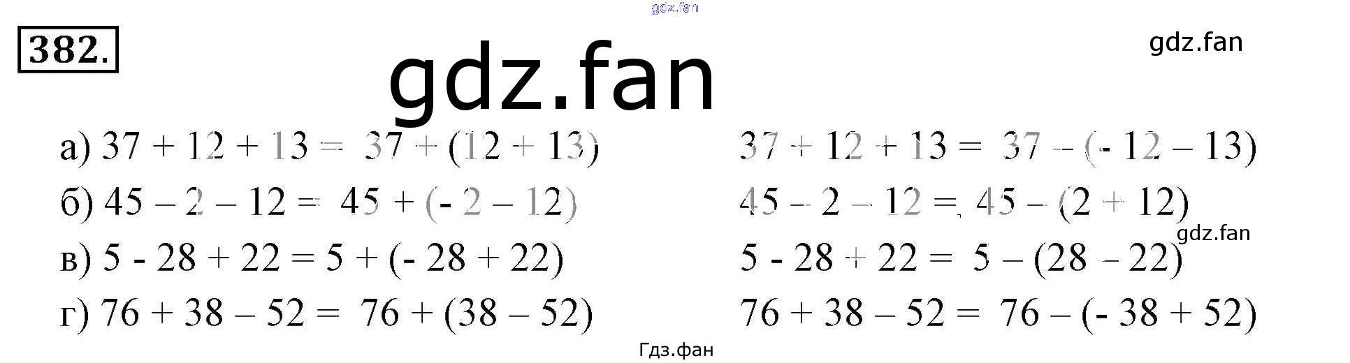 Проверка домашнего задания всегда занимает большое количество времени. На помощь приходит ГДЗ фан по Математике шестого класса. Здесь собраны популярные ответы на 382 (стр. 74) Математика 6 класс Никольский С.М.