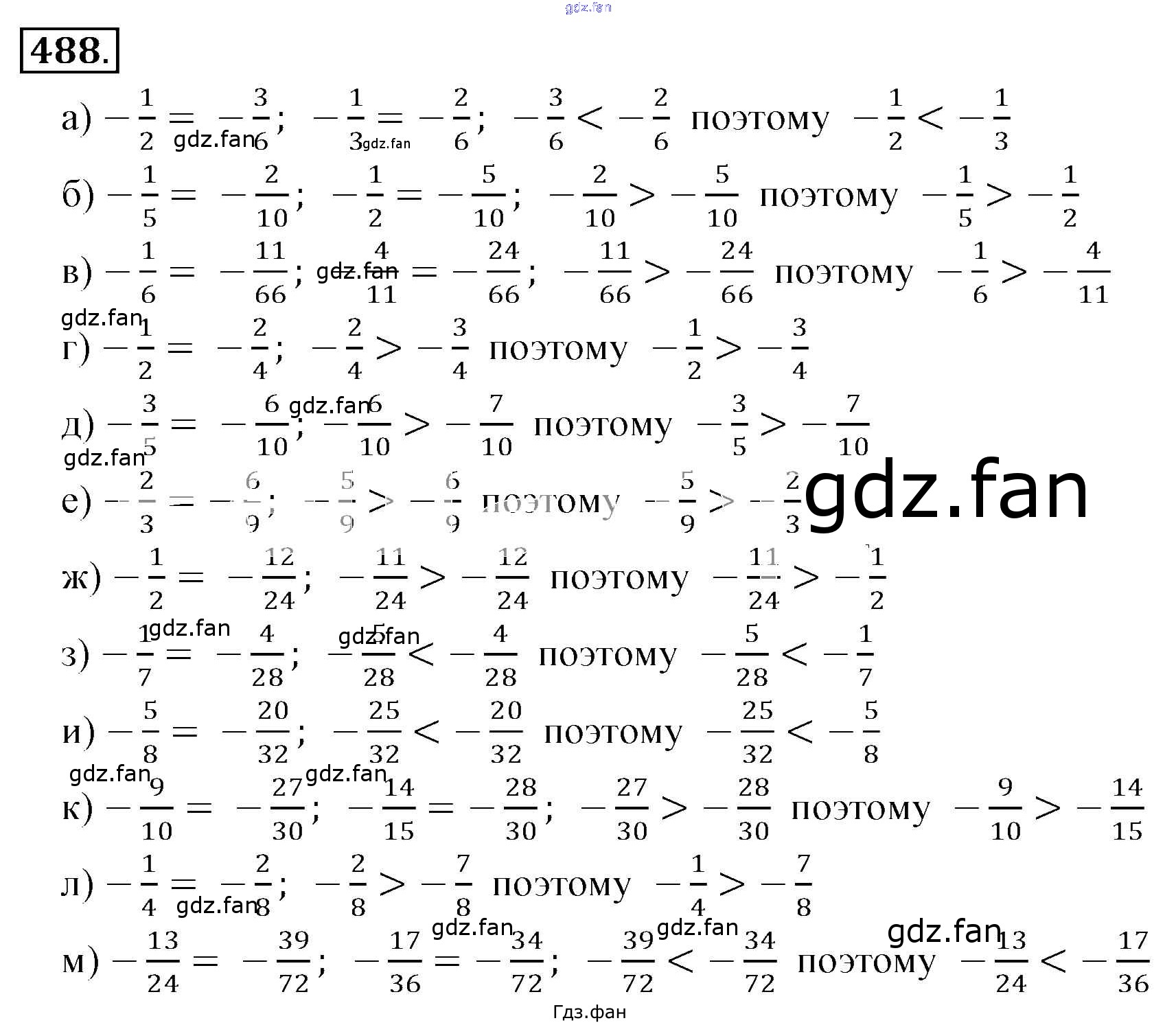 Проверка домашнего задания всегда занимает большое количество времени. На помощь приходит ГДЗ фан по Математике шестого класса. Здесь собраны популярные ответы на 488 (стр. 96) Математика 6 класс Никольский С.М.