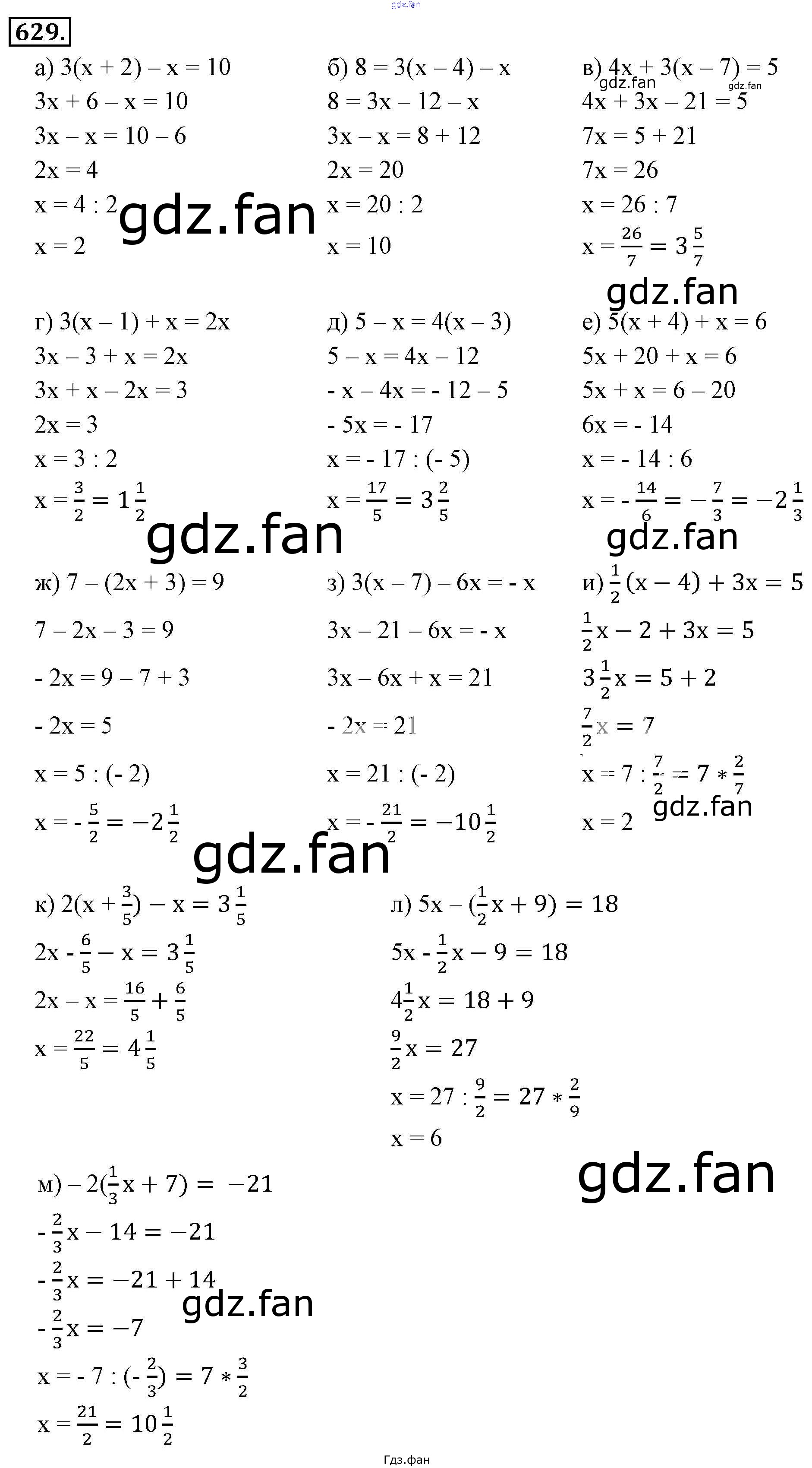 Проверка домашнего задания всегда занимает большое количество времени. На помощь приходит ГДЗ фан по Математике шестого класса. Здесь собраны популярные ответы на 629 (стр. 123) Математика 6 класс Никольский С.М.