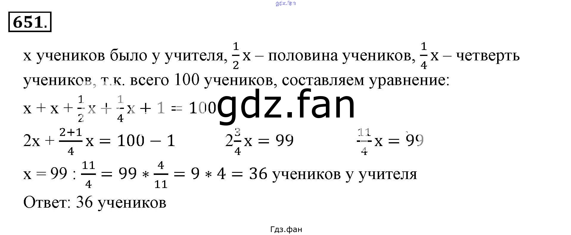 Проверка домашнего задания всегда занимает большое количество времени. На помощь приходит ГДЗ фан по Математике шестого класса. Здесь собраны популярные ответы на 651 (стр. 127) Математика 6 класс Никольский С.М.