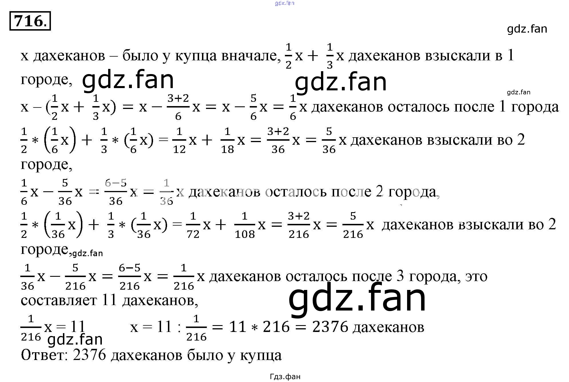 Проверка домашнего задания всегда занимает большое количество времени. На помощь приходит ГДЗ фан по Математике шестого класса. Здесь собраны популярные ответы на 716 (стр. 140) Математика 6 класс Никольский С.М.