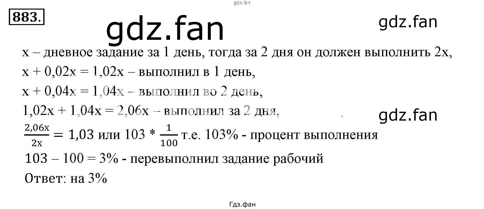 Проверка домашнего задания всегда занимает большое количество времени. На помощь приходит ГДЗ фан по Математике шестого класса. Здесь собраны популярные ответы на 883 (стр. 167) Математика 6 класс Никольский С.М.