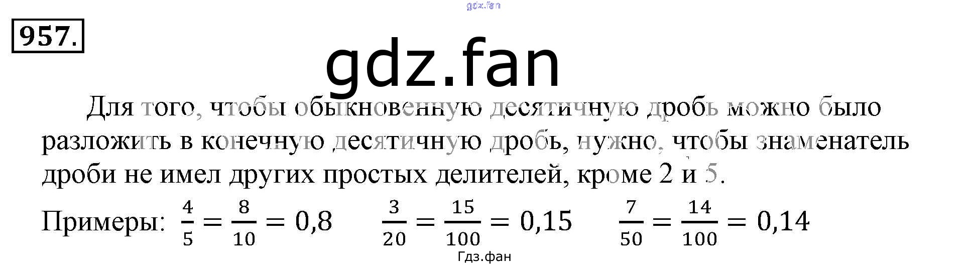 Проверка домашнего задания всегда занимает большое количество времени. На помощь приходит ГДЗ фан по Математике шестого класса. Здесь собраны популярные ответы на 957 (стр. 190) Математика 6 класс Никольский С.М.