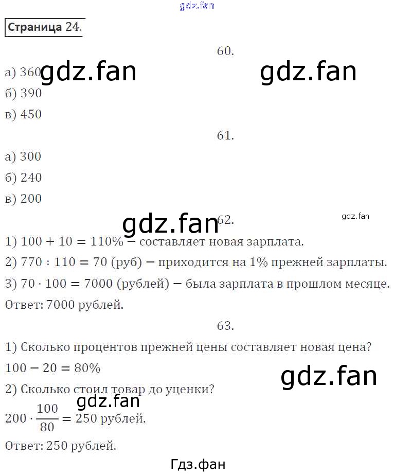 Проверка домашнего задания всегда занимает большое количество времени. На помощь приходит ГДЗ фан по Математике шестого класса. Здесь собраны популярные ответы на 24 (№ 60, 61, 62, 63) Математика 6 класс рабочая тетрадь Потапов М.К.