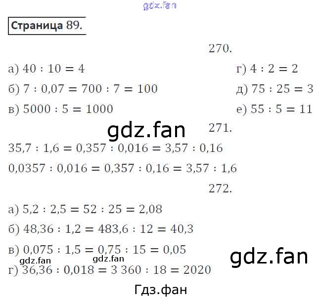 Проверка домашнего задания всегда занимает большое количество времени. На помощь приходит ГДЗ фан по Математике шестого класса. Здесь собраны популярные ответы на 89 (№ 270, 271, 272) Математика 6 класс рабочая тетрадь Потапов М.К.